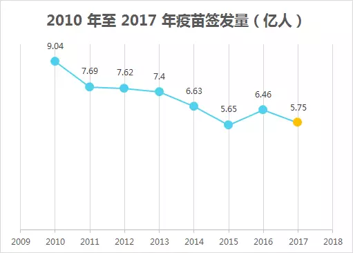 相比 2010 的 9.04 億簽發(fā)量來說,今年的疫苗總數(shù)近乎砍半,近幾年疫苗簽發(fā)數(shù)量在逐年減少,我們也可以從側(cè)面推測中國人口數(shù)在緩慢下降,疫苗市場在逐漸縮小。