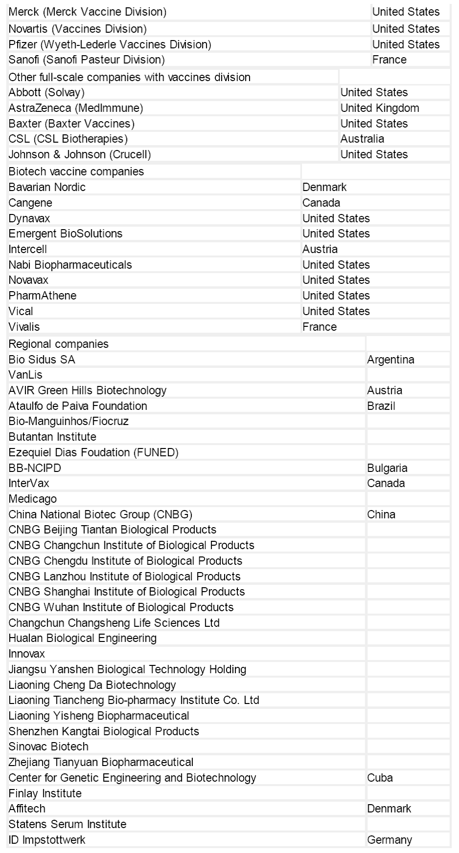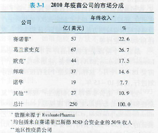 疫苗產(chǎn)業(yè)由許多公司組成,主要包括從事疫苗的研究,開發(fā),生產(chǎn),銷售和配送等任一環(huán)節(jié)。公司主要從產(chǎn)品銷售和前景預(yù)測(cè)獲得回報(bào)。疫苗產(chǎn)業(yè)規(guī)模較小但持續(xù)增長(zhǎng)。2010年全球疫苗銷售額估計(jì)超過(guò)250億美元。雖然50多個(gè)國(guó)家都有疫苗企業(yè),但大型疫苗公司主要位于美國(guó)和歐洲,根據(jù)銷售收入,這些跨國(guó)公司占據(jù)了疫苗市場(chǎng)的主導(dǎo)地位,但根據(jù)疫苗產(chǎn)量,地區(qū)性公司的市場(chǎng)份額在逐年增加。
